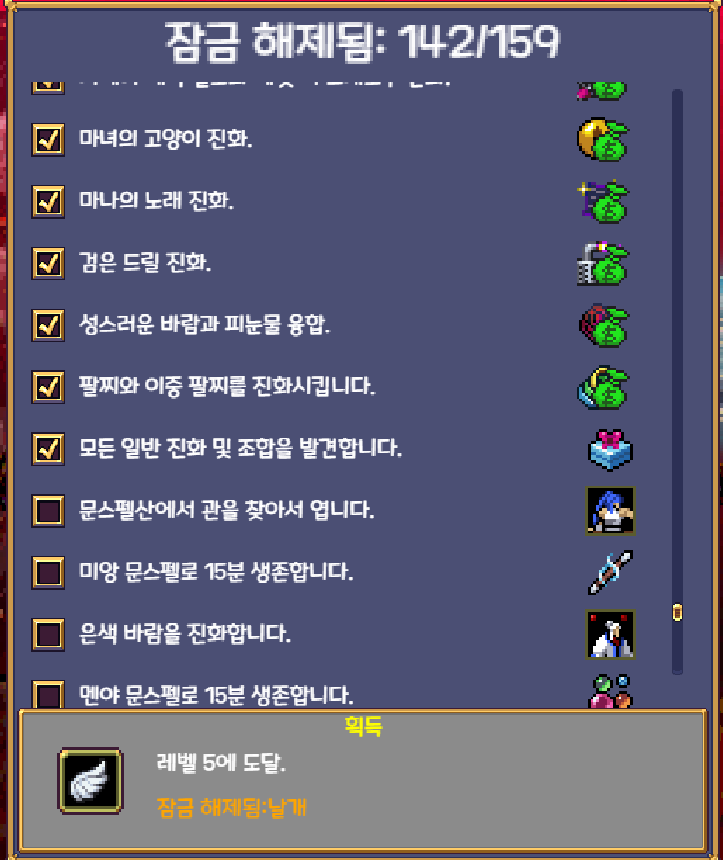 기존에 업적인 중간 중간에 들어가 있었는데 이번 패치로 새로운 업적들은 맨아래에 추가 되었다.