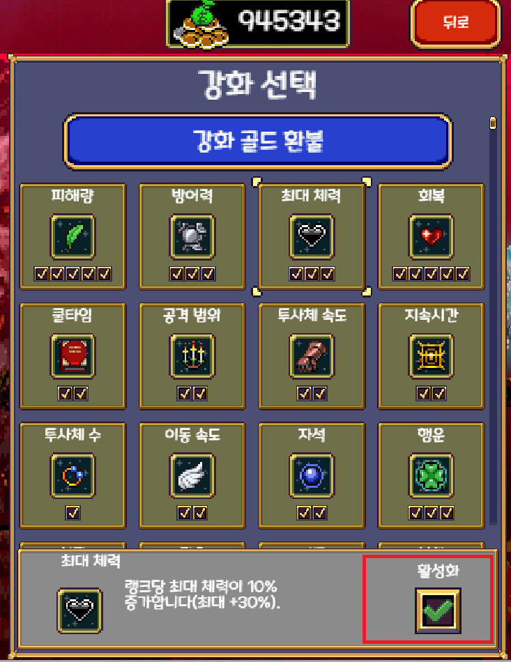 강화을 활성화 비활성화 할 수 있다. 강화 리셋 안해도 된다.