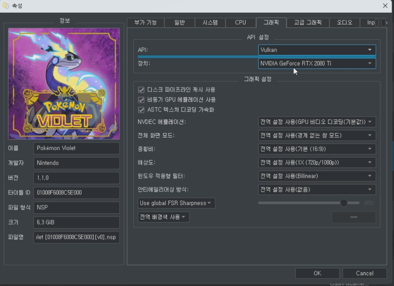 YUZU 닌텐도 스위치 포켓몬스터 바이올렛 프레임 드랍관련 해결 방법