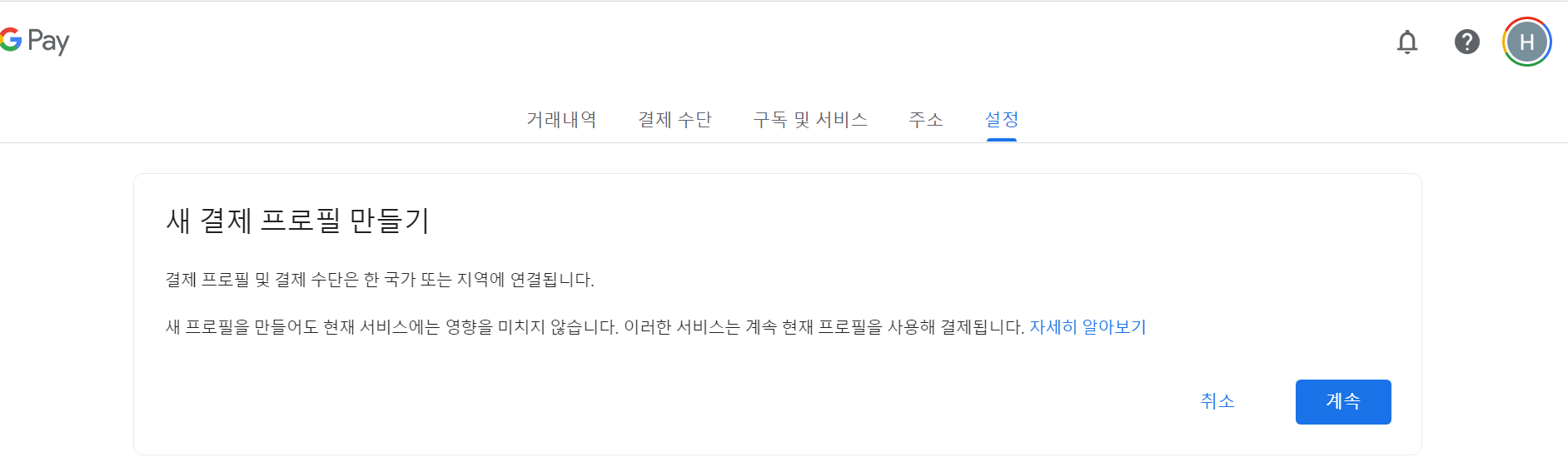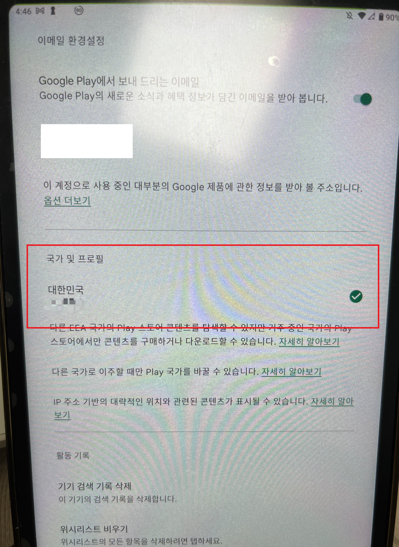 구동시 위와 같이 거주 국가에서 사용할 수 없는 항목입니다. 라고 뜬다.