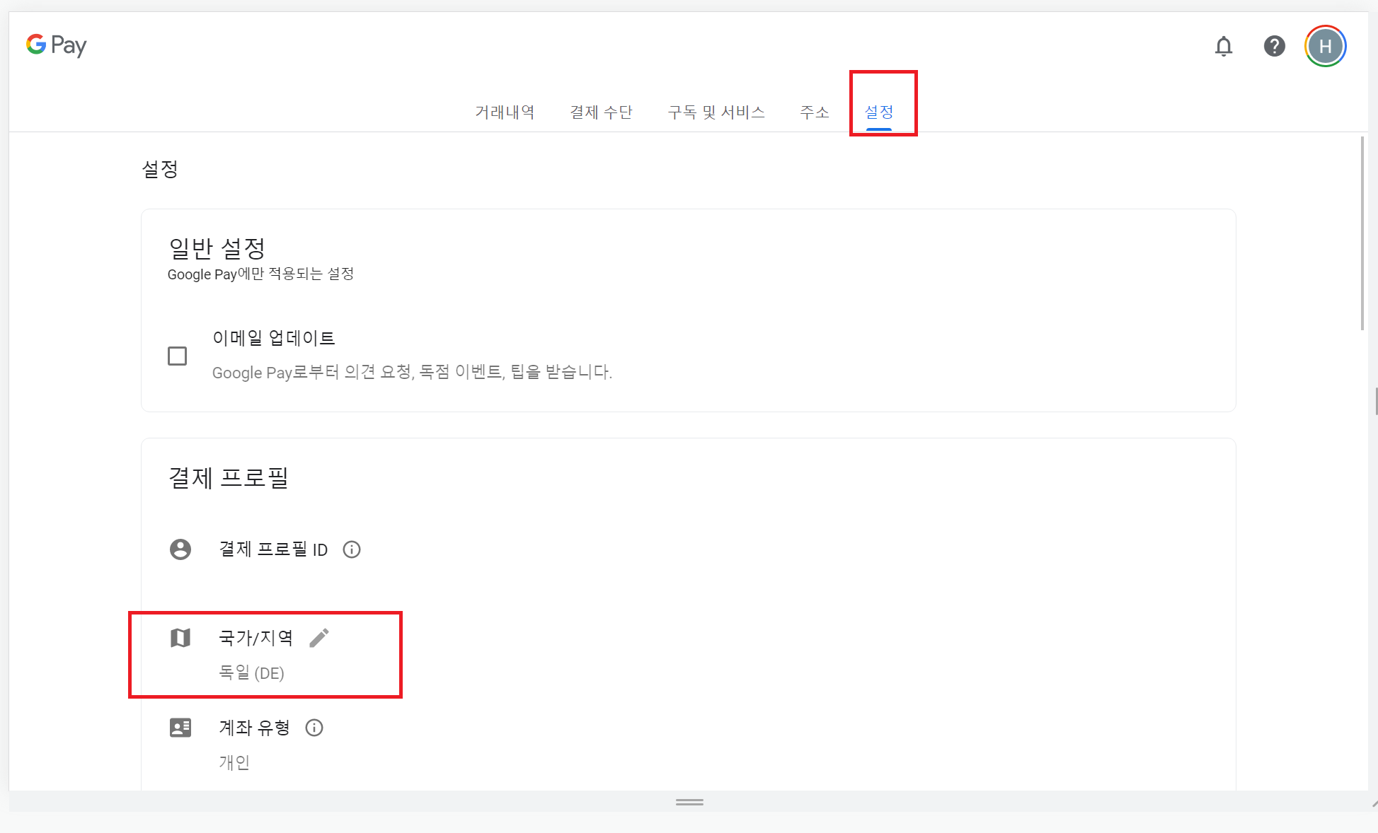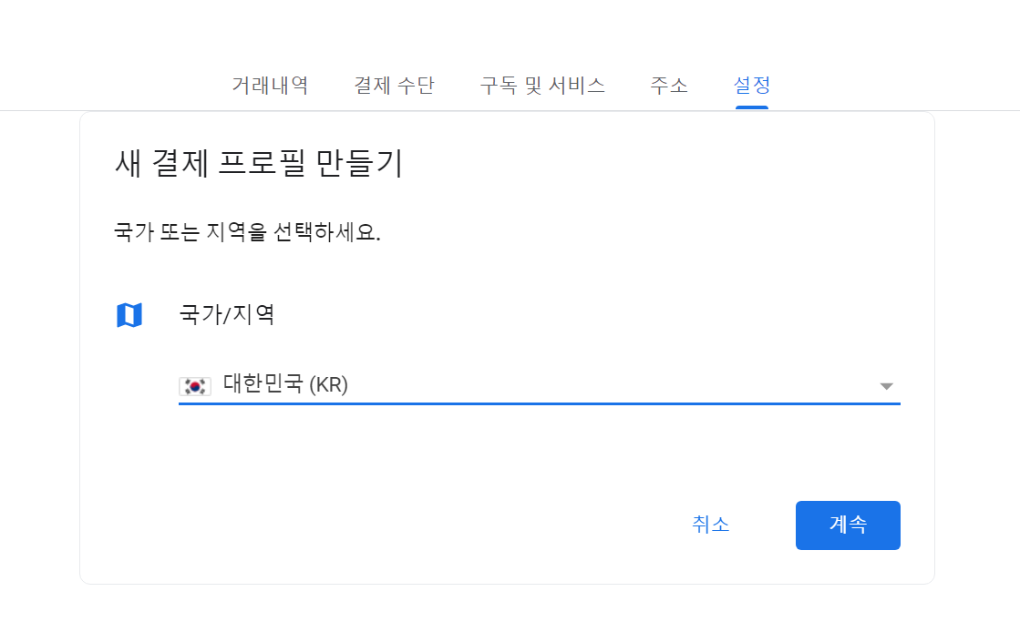 위에 탭에서 설정에 국가/지역을 클릭하자.