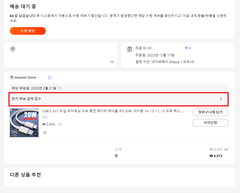 당연히 조회가 되는 택배도 아니다. 느긋이 이제부터 7~10일정도 기다리면 받을 수 있다.