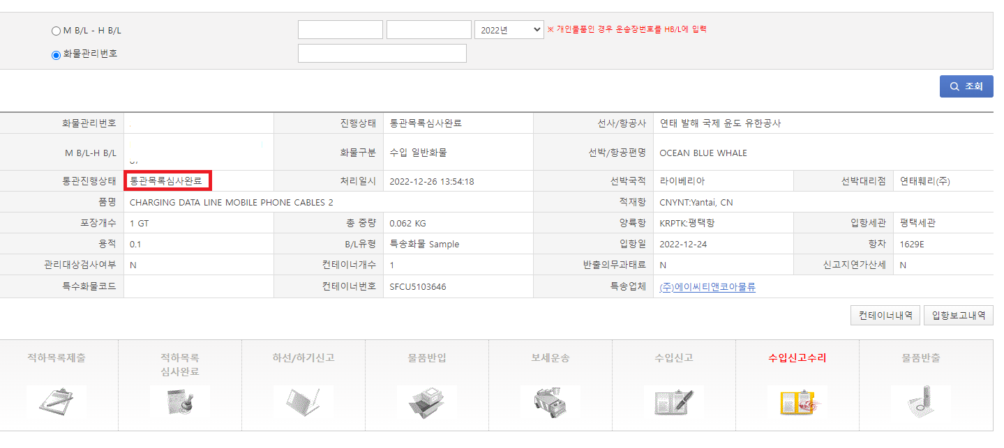 그럼 통관 상태를 확인 할 수 있다. 통관목록심사완료 상태이다.