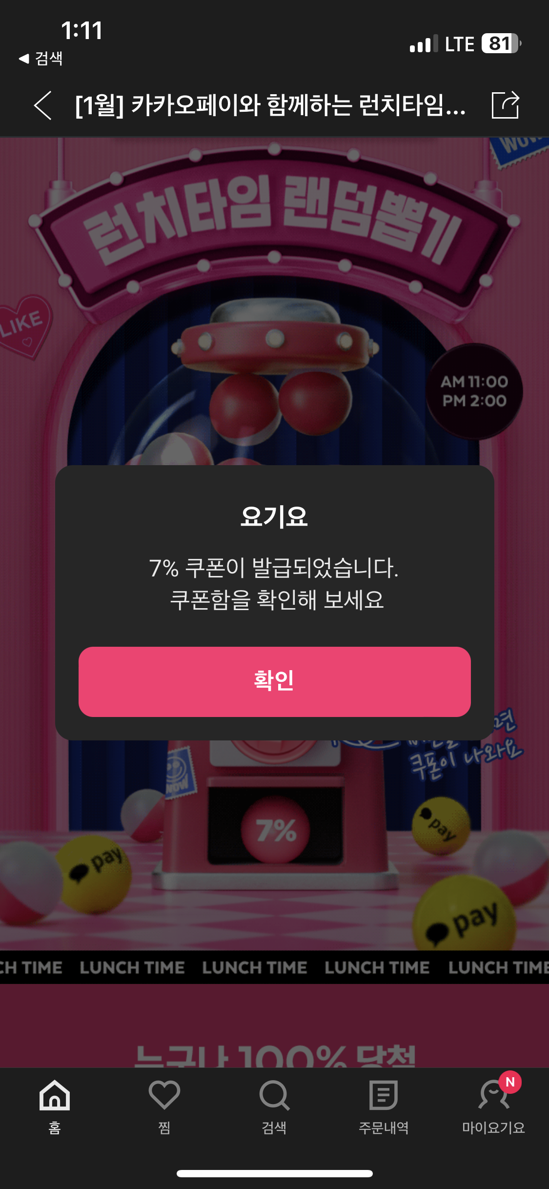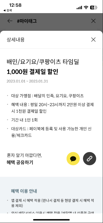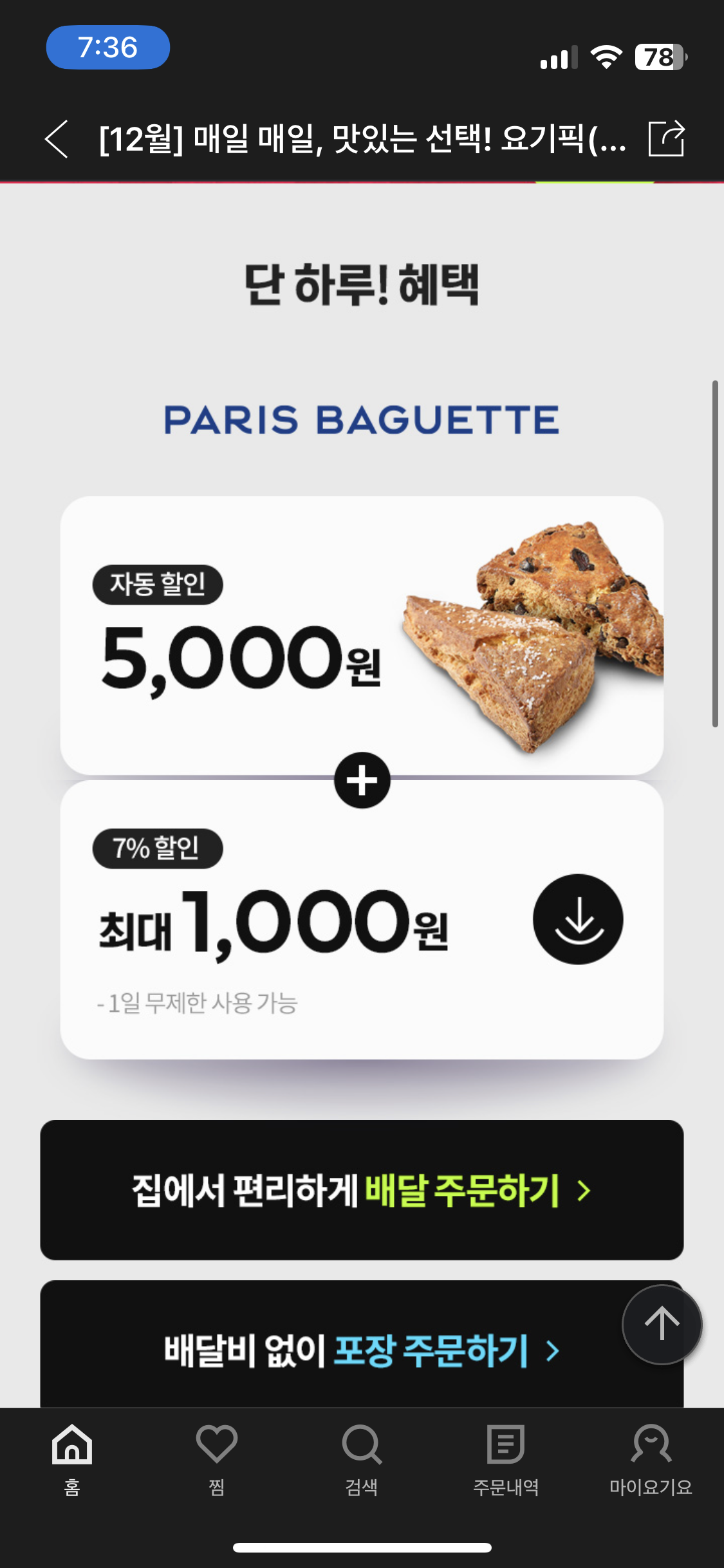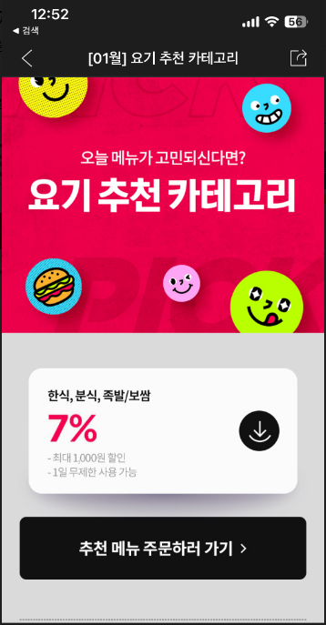 1만 이상 7%로 최대 1500원할인(한식/일식 한정) 5%에서 7%로 올랐다 ㅎ