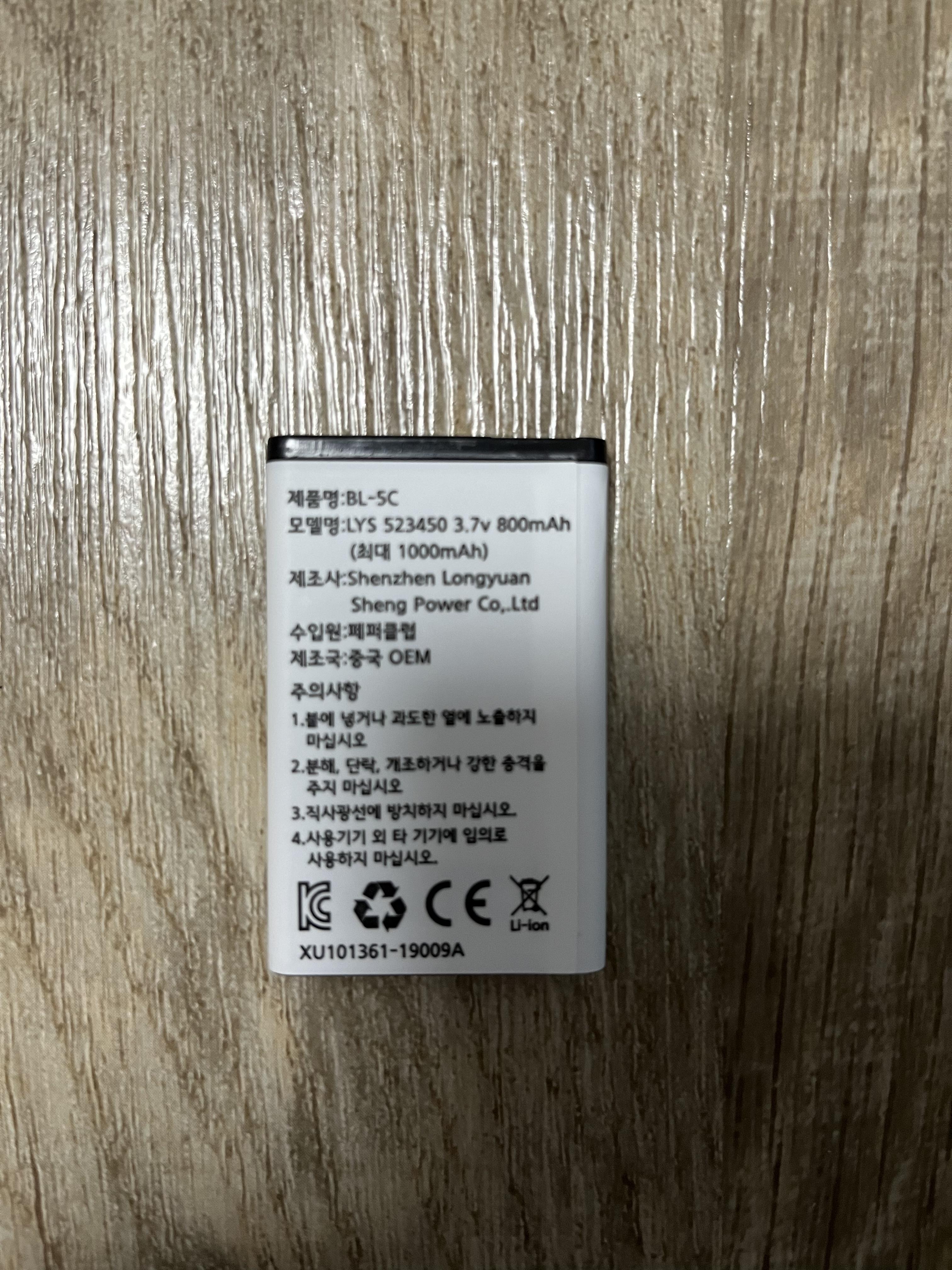 의외이다. 한국 배터리 1000mah 짜리가 들어가 있다.