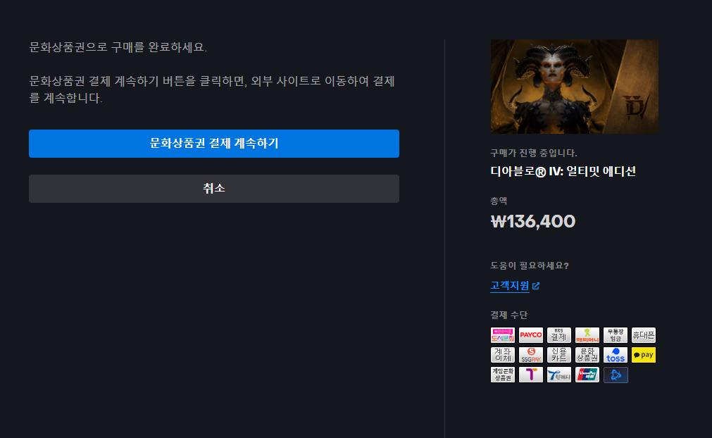 상품권 이벤트 할때 미리 미리 사놓으면 나중에 디아블로4 구매 할때 약간의 할인일 받고 구매 가능하다.