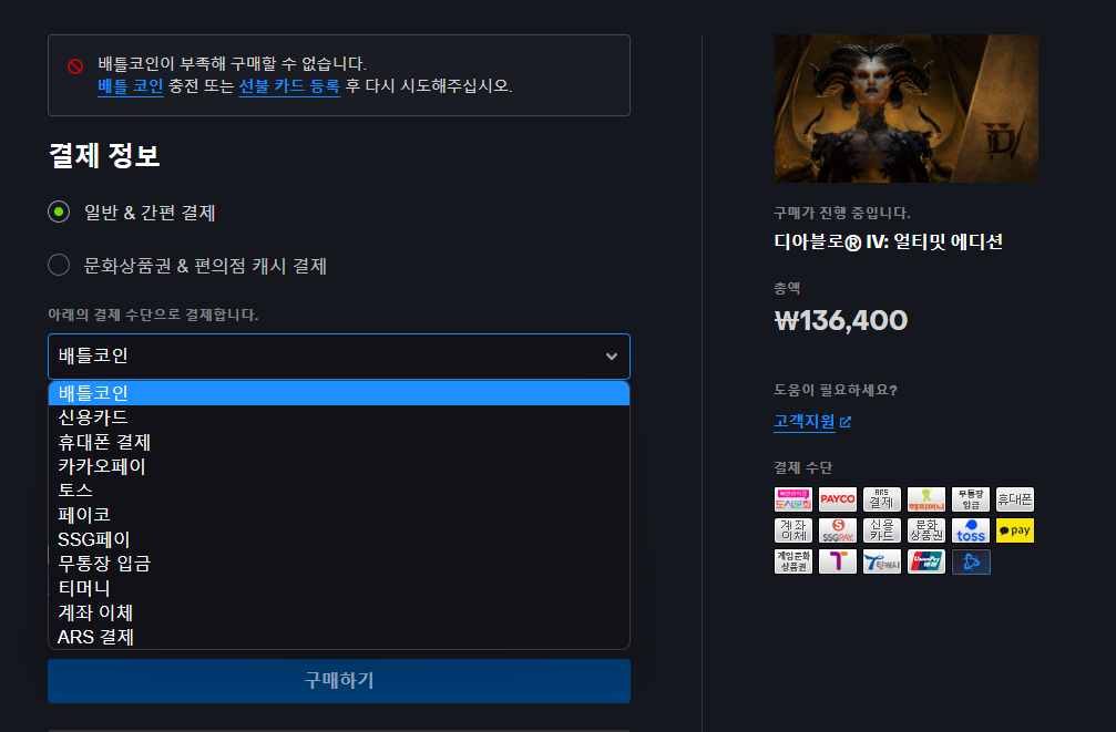 블리자드 게임들은 다양한 결제 수단이 존제 한다.