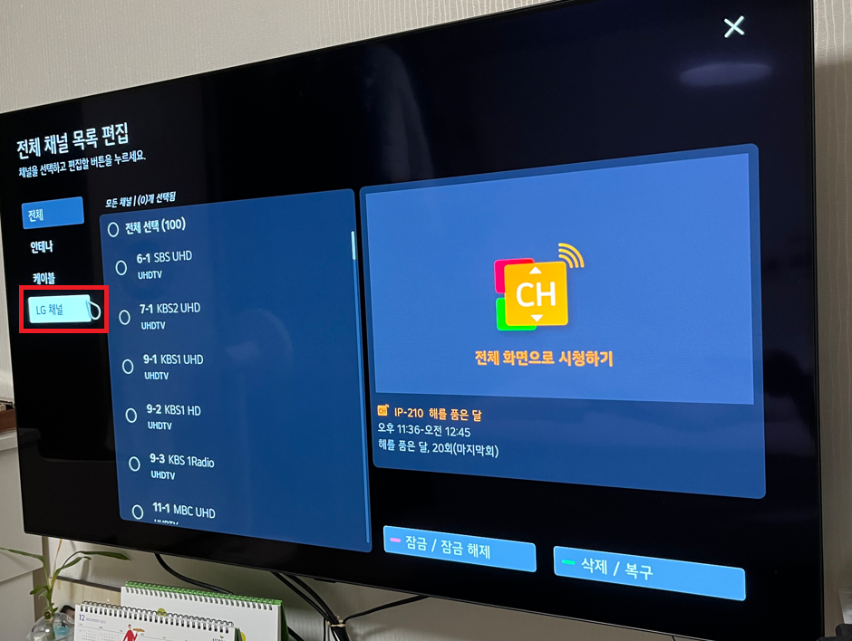 그리고 TV를 끄고 다시 위 메뉴로 가서 채널을 복구를 하자.