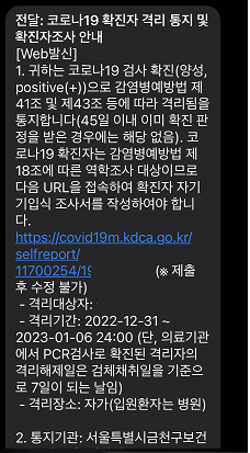 집에 오는길에 코로나 확진 문자가 오고 약 1시간 후에 보건소에서 연락이 왔다. 문자에 설문 해달라고~