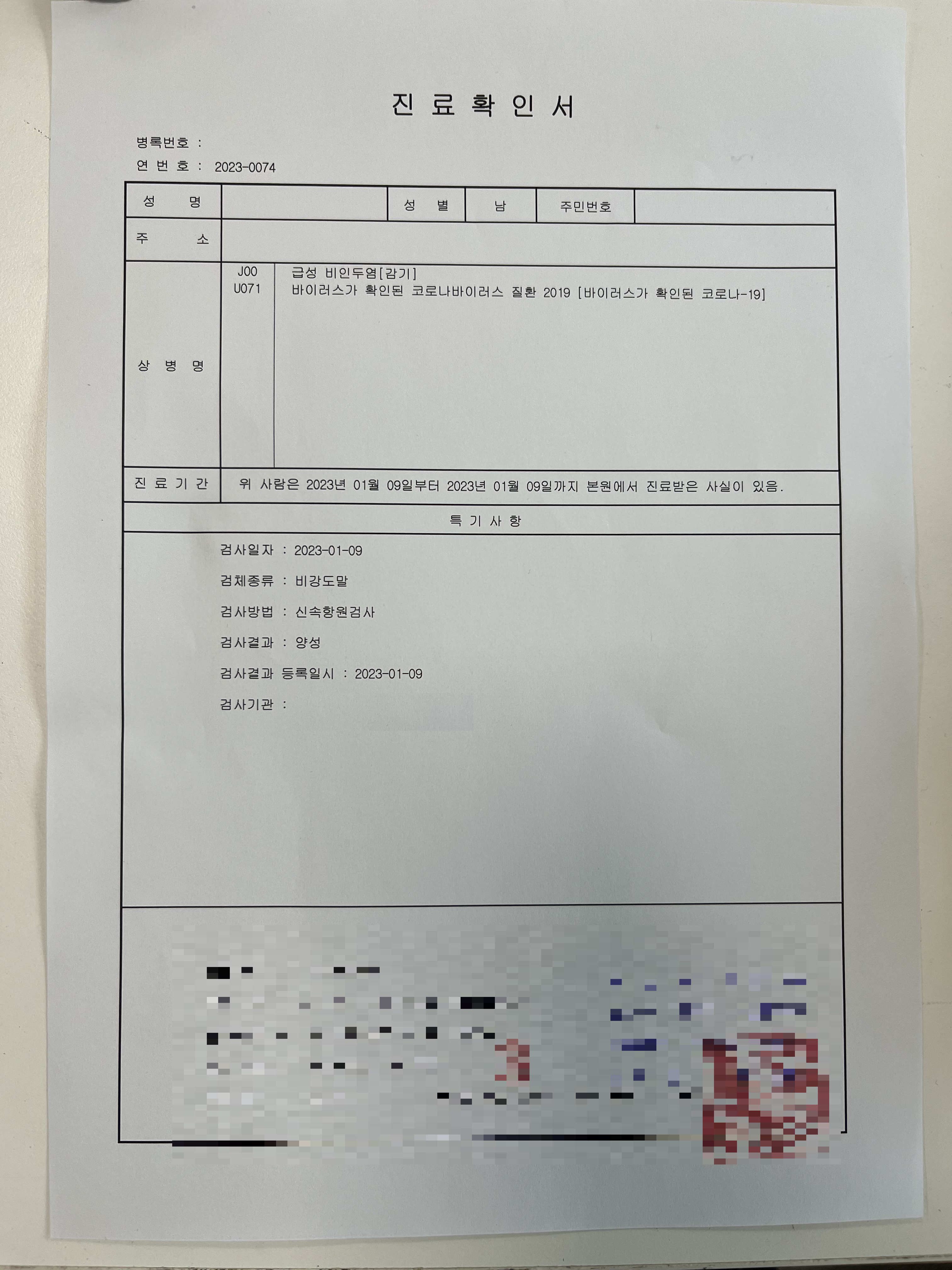 혹시나 하고 집에 있는 자가진단키트로 검사를 해봤는데