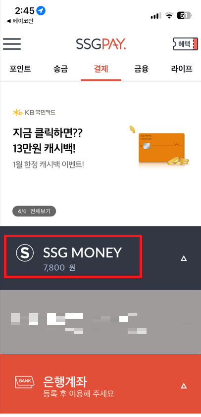 SSGPAY 들어가면 SSGMONEY 가 들어온것을 확인 할 수 있다.