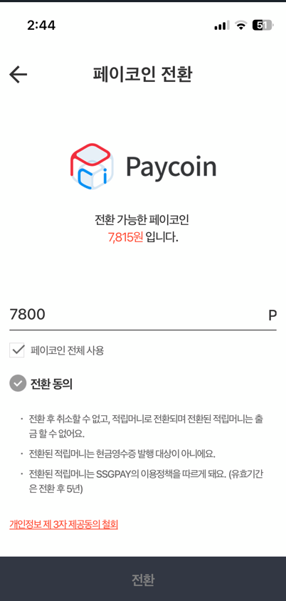 39.67 페이코인을 가지고 있다. 이걸 SSGMONEY로 전환 하자.
