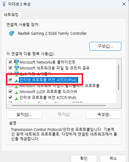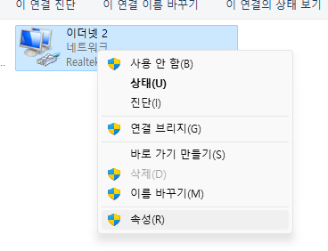 사용하고 있는 네트워크에 들어가서 속성을 누르자.