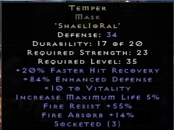 | Temper | Shael + lo + Ral | Helm | 35 |