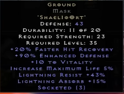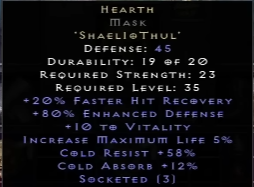 | Hearth | Shael + lo + Thul | Helm | 35 |