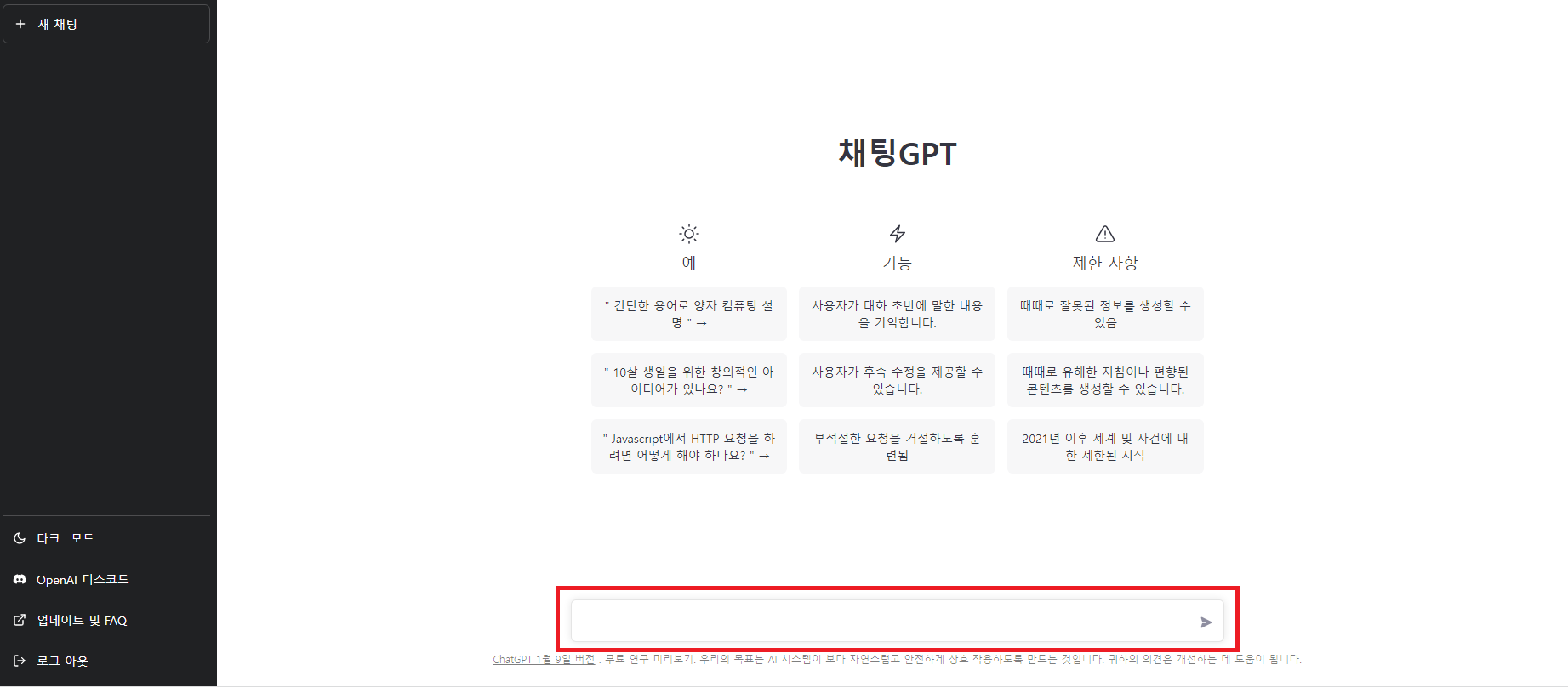 위처럼 페이지가 열리고 아래 박스에 궁금한거 질문을 하면 된다.