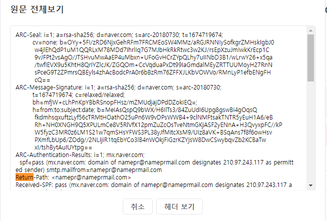 Return-Path 경로가 내 메일이 맞다.. 뭐지? 하고 이것저것 확인 해봤는데