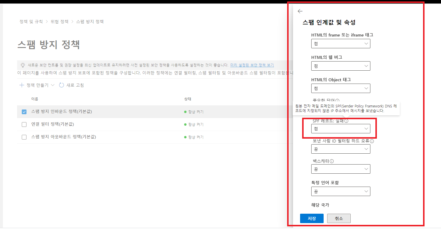 SPF 레코드 켬으로 바꾸면 SPF 오류 뜨면 메일 발송 안되거나 스팸으로 들어가게 된다.