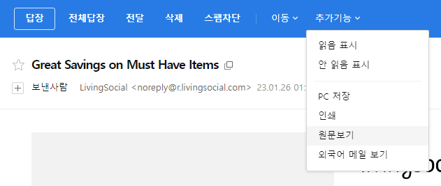 보통 스팸메일 확인 하는 방법은 헤더값을 확인 하는 방법이다.