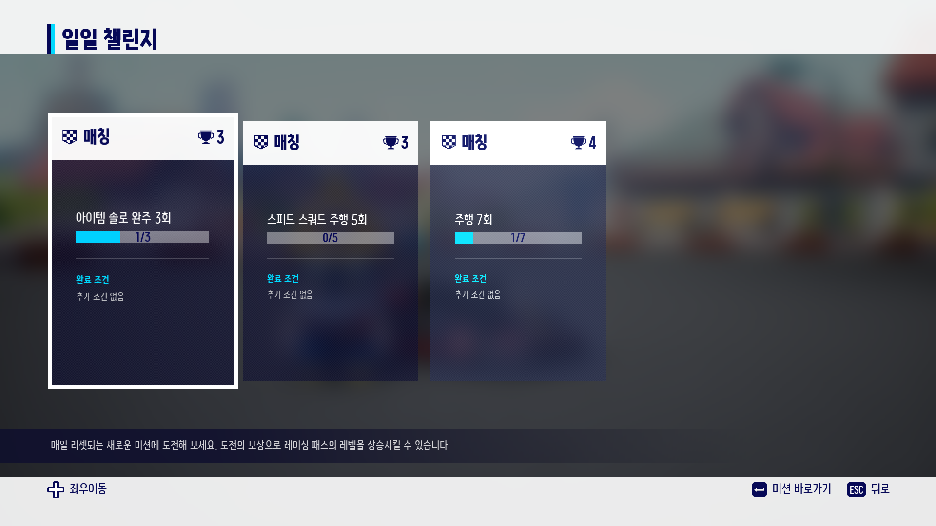 일일 챌린지도 있다 모든 미션 완료 하면 보상이 있다.