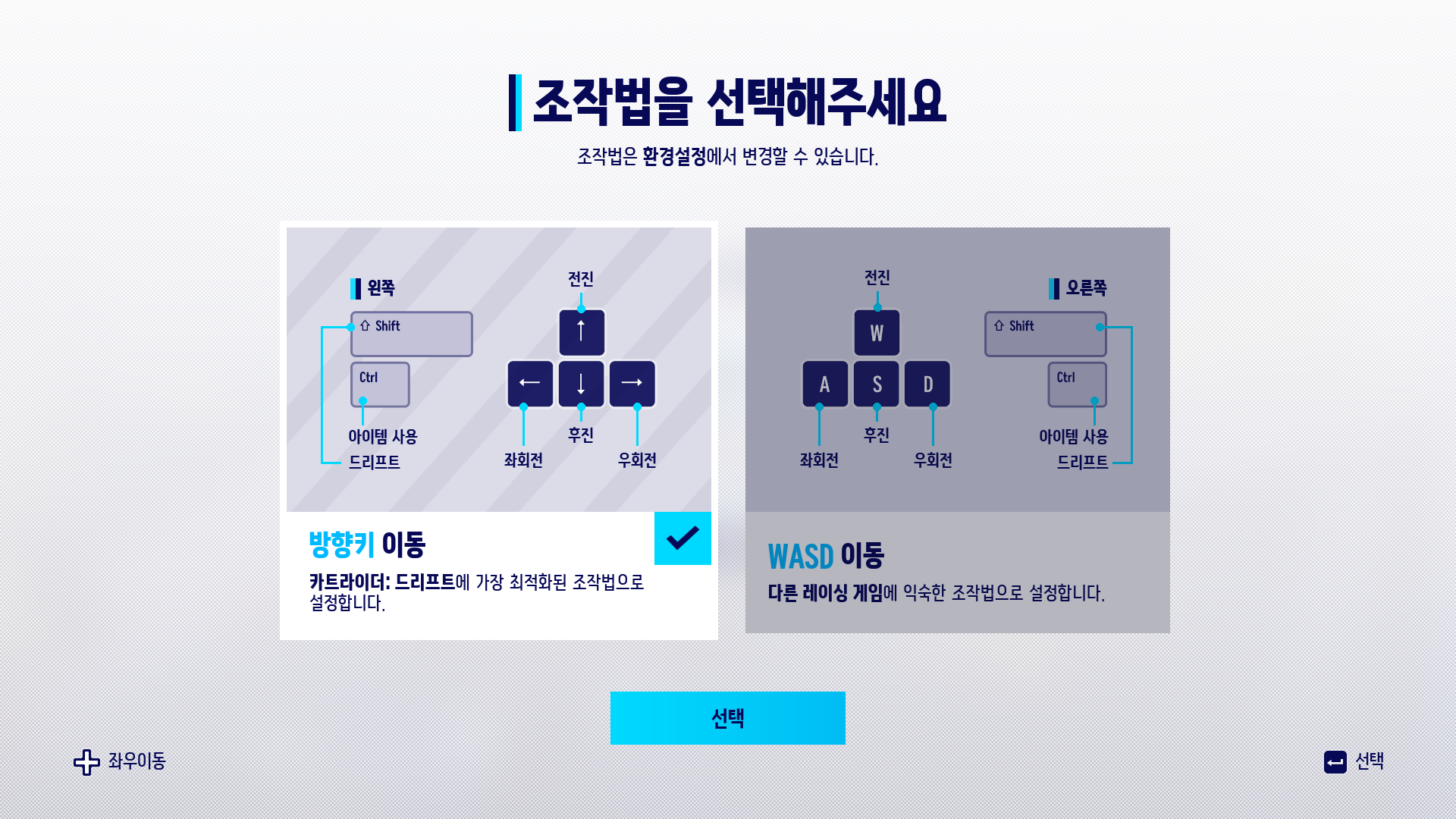 조작 설정을 선택 해주세요 라고 뜬다 오토매틱과 오리지널을 선택 하면 되는데 기존에 카트 했던 사람은 오리지널 선택 해주면 된다.