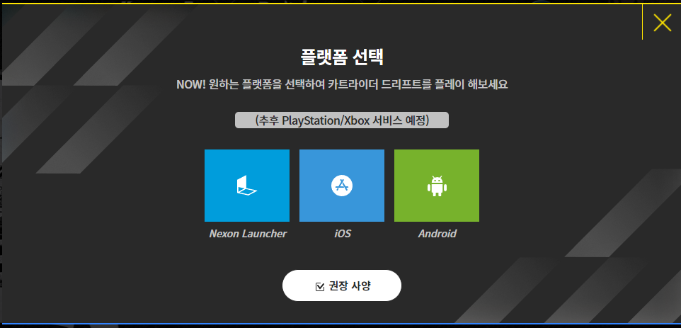 멀티플랫폼을 지원하고 동시에 같이 대전이 가능하다 플레이스테이션과 엑스박스는 추후 서비스 예정이라고 한다.
