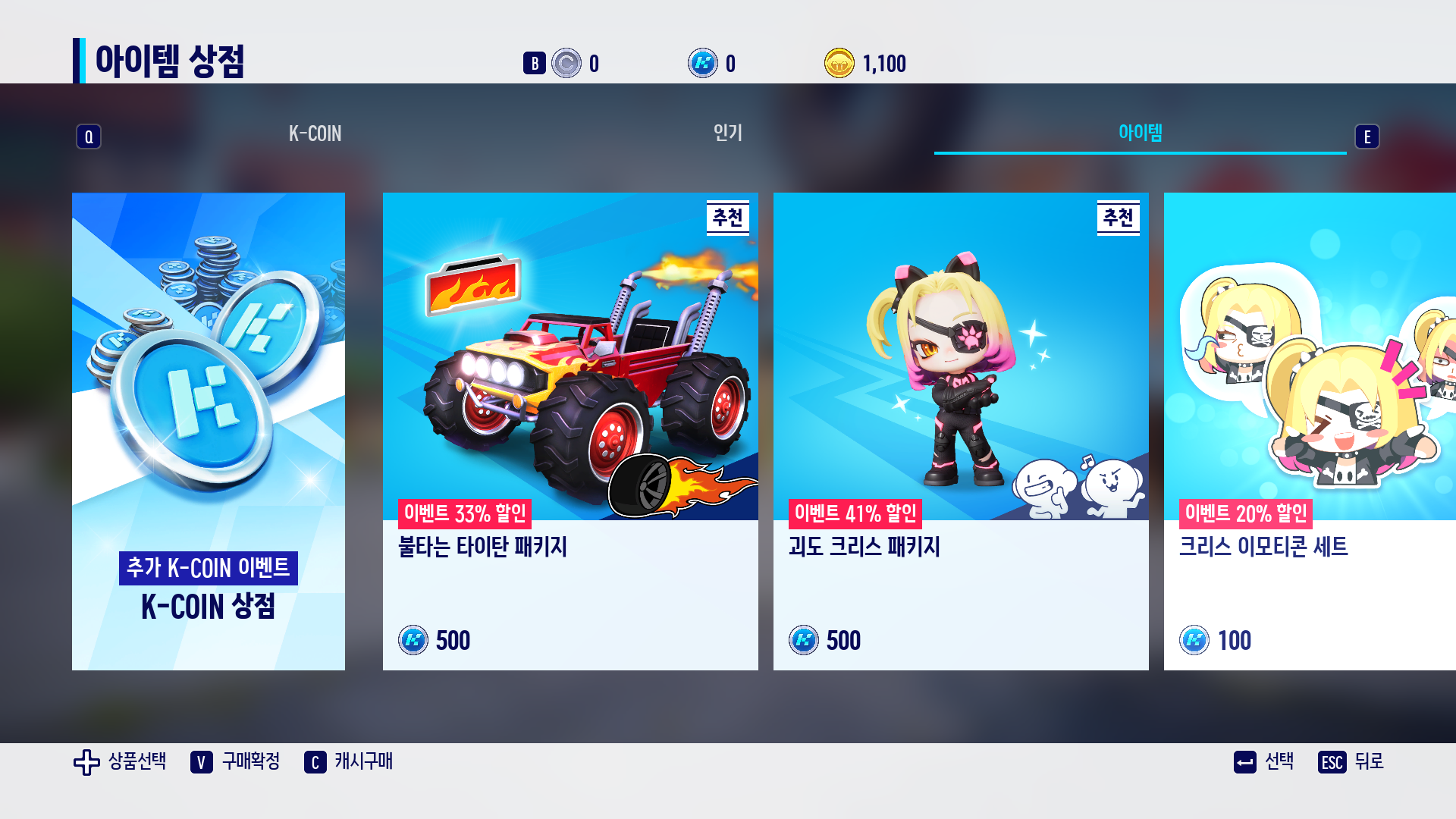 당연히 과금요소도 있다. K-COIN 상점에서 템들을 구매 할 수 있다.