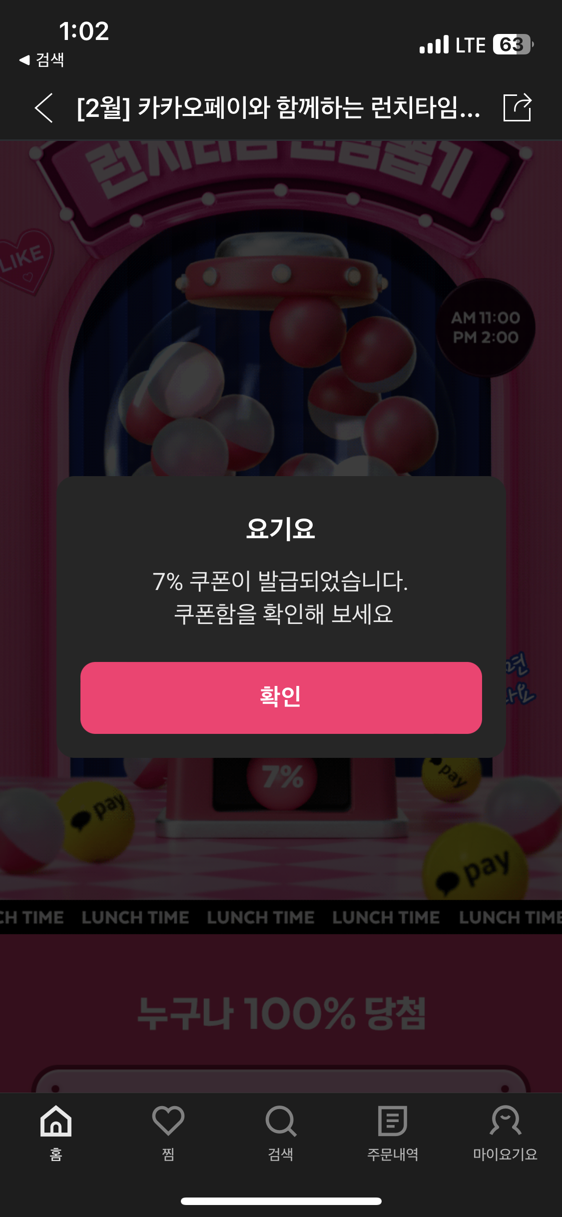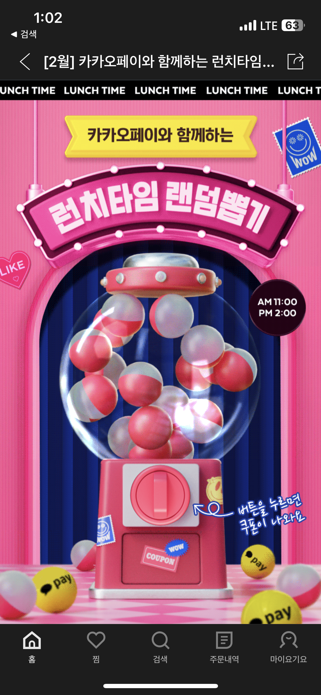 런치쿠폰은 역시나 랜덤하게 나온다.