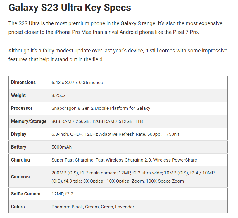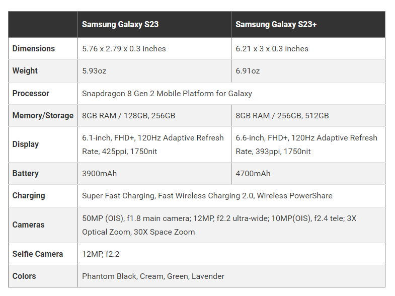 Specs | Samsung Galaxy S23 & S23+ | The Official Samsung Galaxy Site