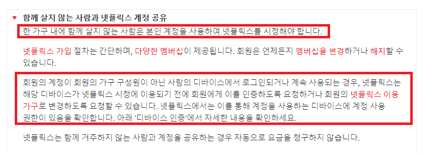 함께 살지 않는 사람과 넷플릭스 계정 공유 할 경우 인증을 수시로 해야 한다는 내용이 있다.