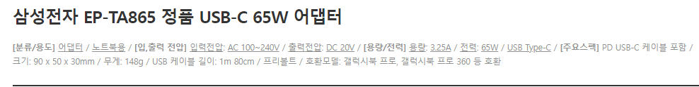 반대쪽은 충전케이블(C To C) 메뉴얼이 있다.