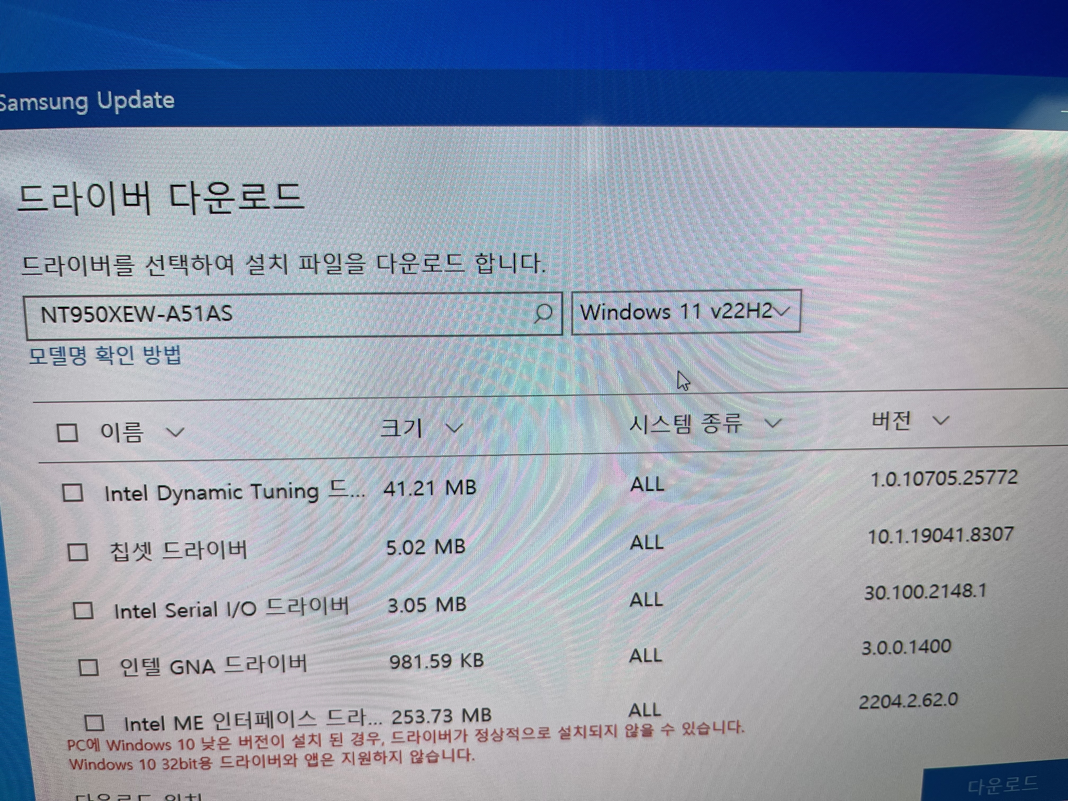 모델명 검색으로 윈도우11 v22h2 로 찾기해서 모두다 설치 해보자.
