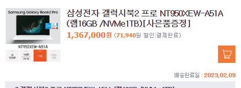 갤럭시북3 프로가 나왔지만 출시 이벤트로 구매한게 아니면 좀 비싼감이 있고 원하는 15인치는 이번에 갤럭시북3은 안나왔다(14인치 16인) 그래서 어쩔수 없이 15인치를 쓰고 싶어서 갤럭시북2 프로 1TB 업그레이드 해서 130만원대로 구매 했다.