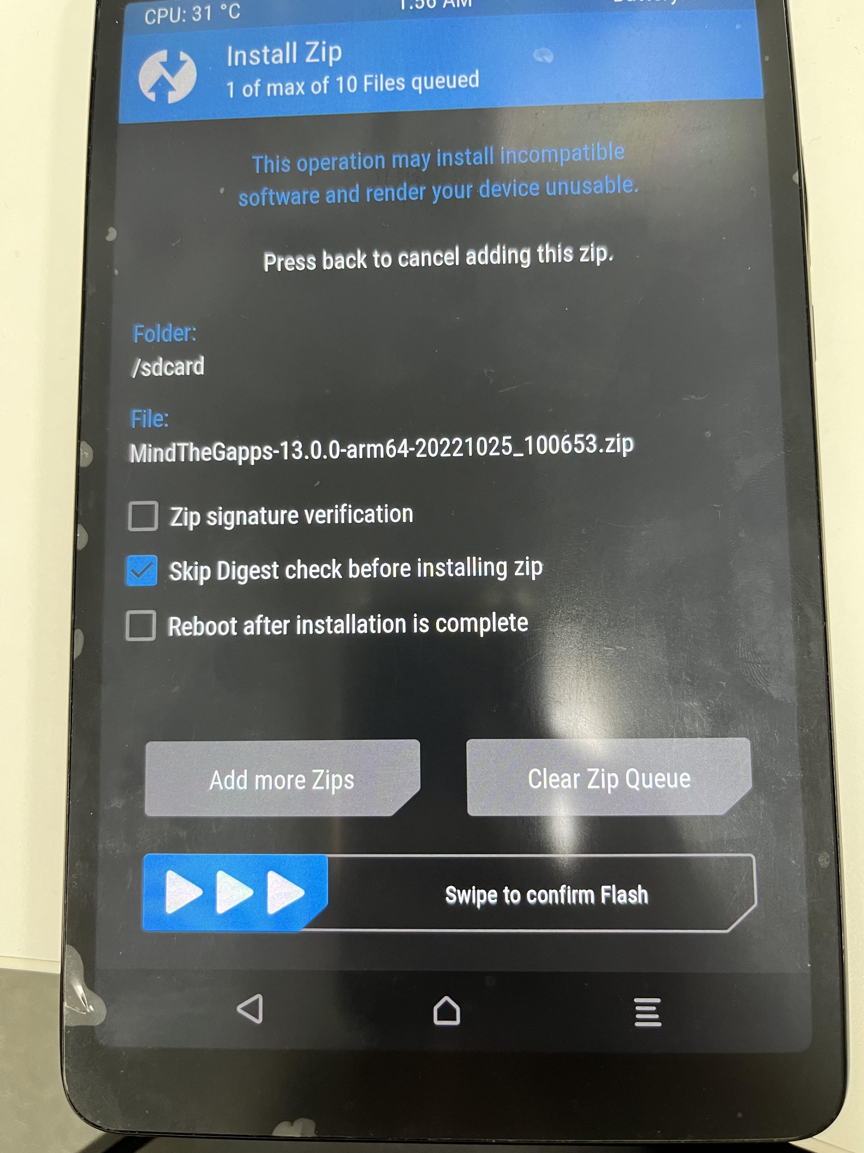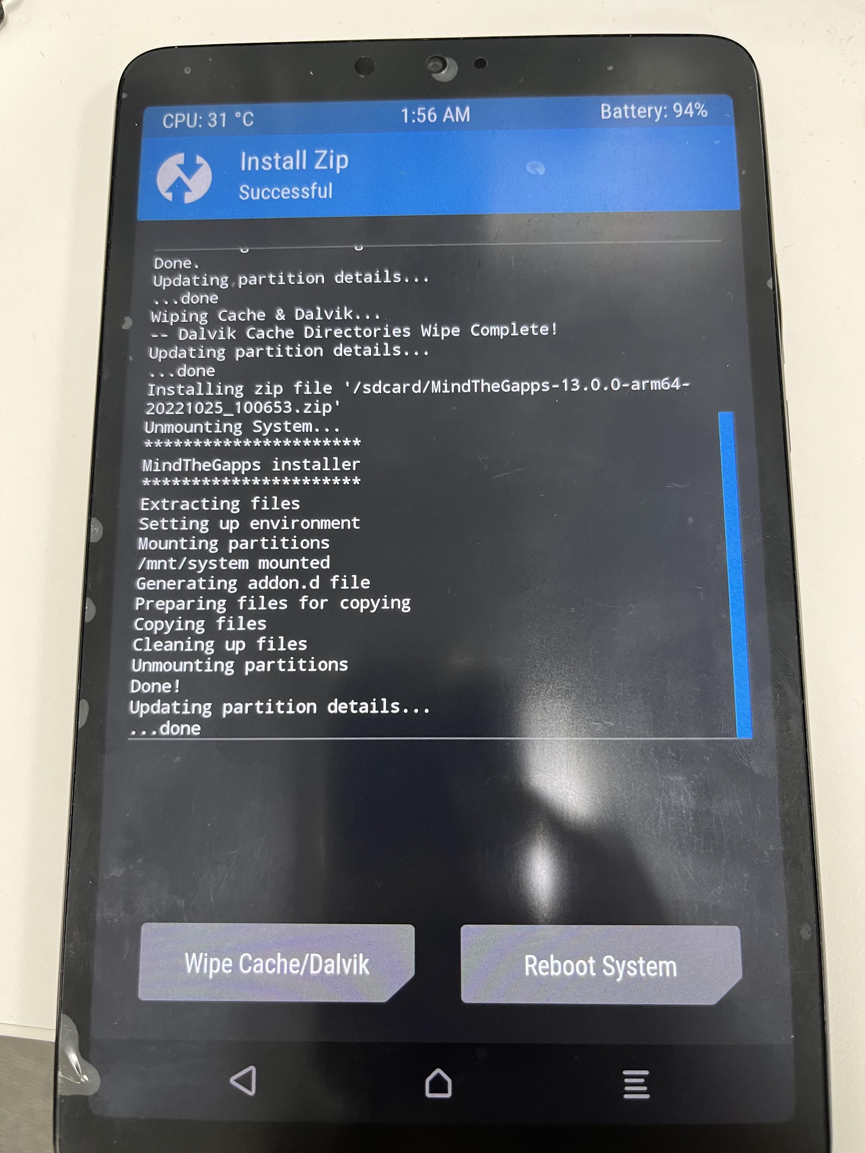 - Flash Gapps (MindTheGapps-13.0.0-arm64 is recommended)