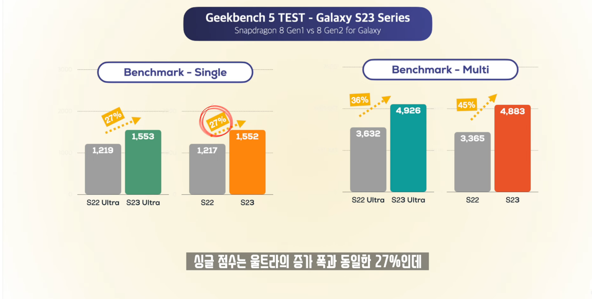 갤럭시S22 에서 갤럭시S23 으로 변경되면서 스냅드래곤8 Gen1 에서 스냅드래곤8 Gen2(for Galaxy) 로 변경되었다.