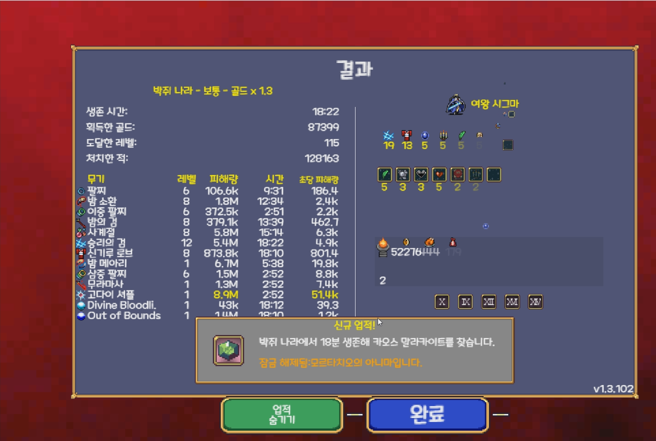 이렇게 하면 1.3 패치 업적은 완료가 된다.
