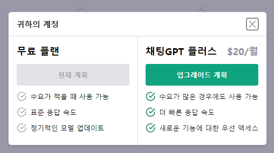 챗팅GPT 플러스가 출시가 되었고 월20달러이다.