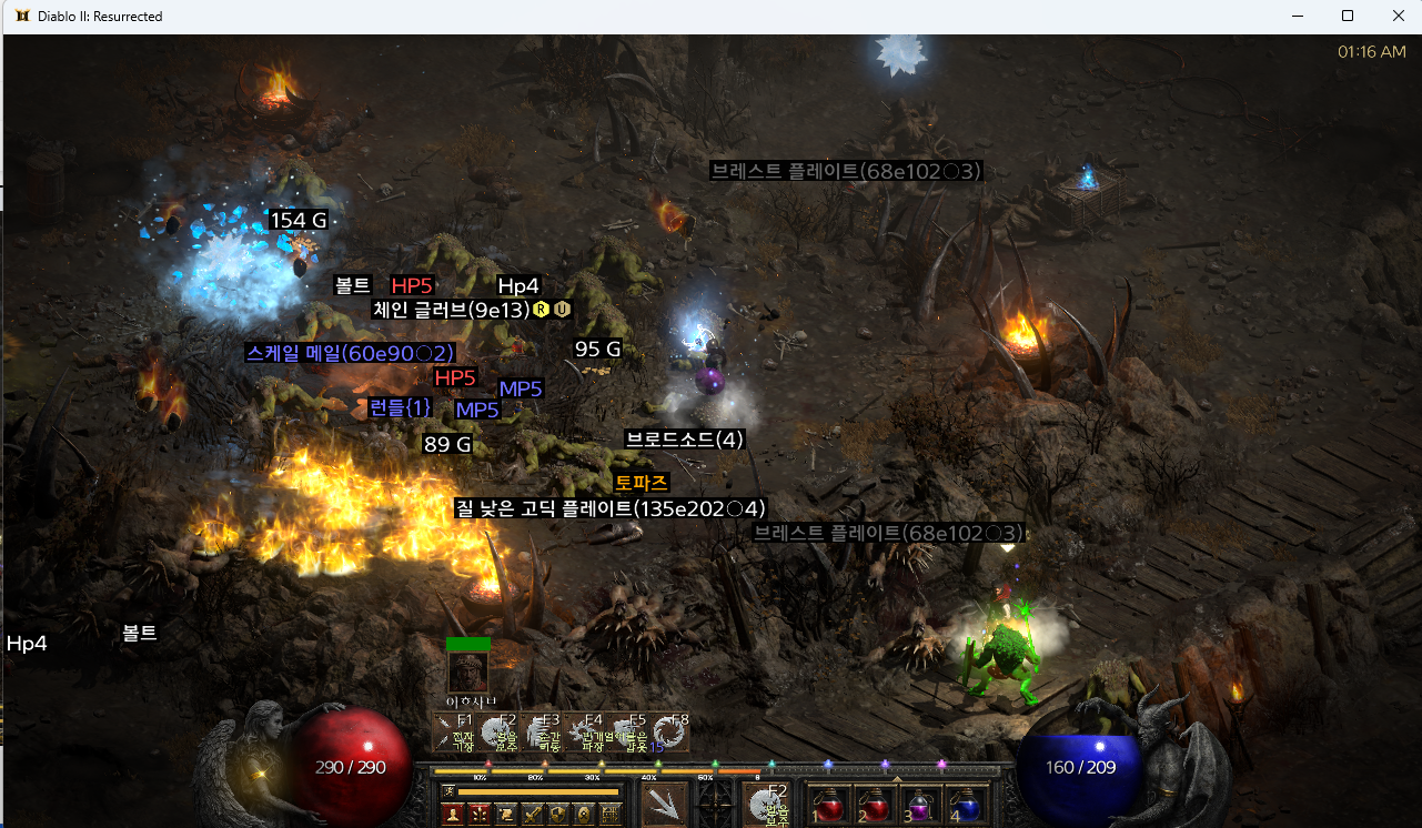 일딴 노말 난이도에서는 크리스탈소드, 브로드소드는 4솟은 드랍되지 않는다.