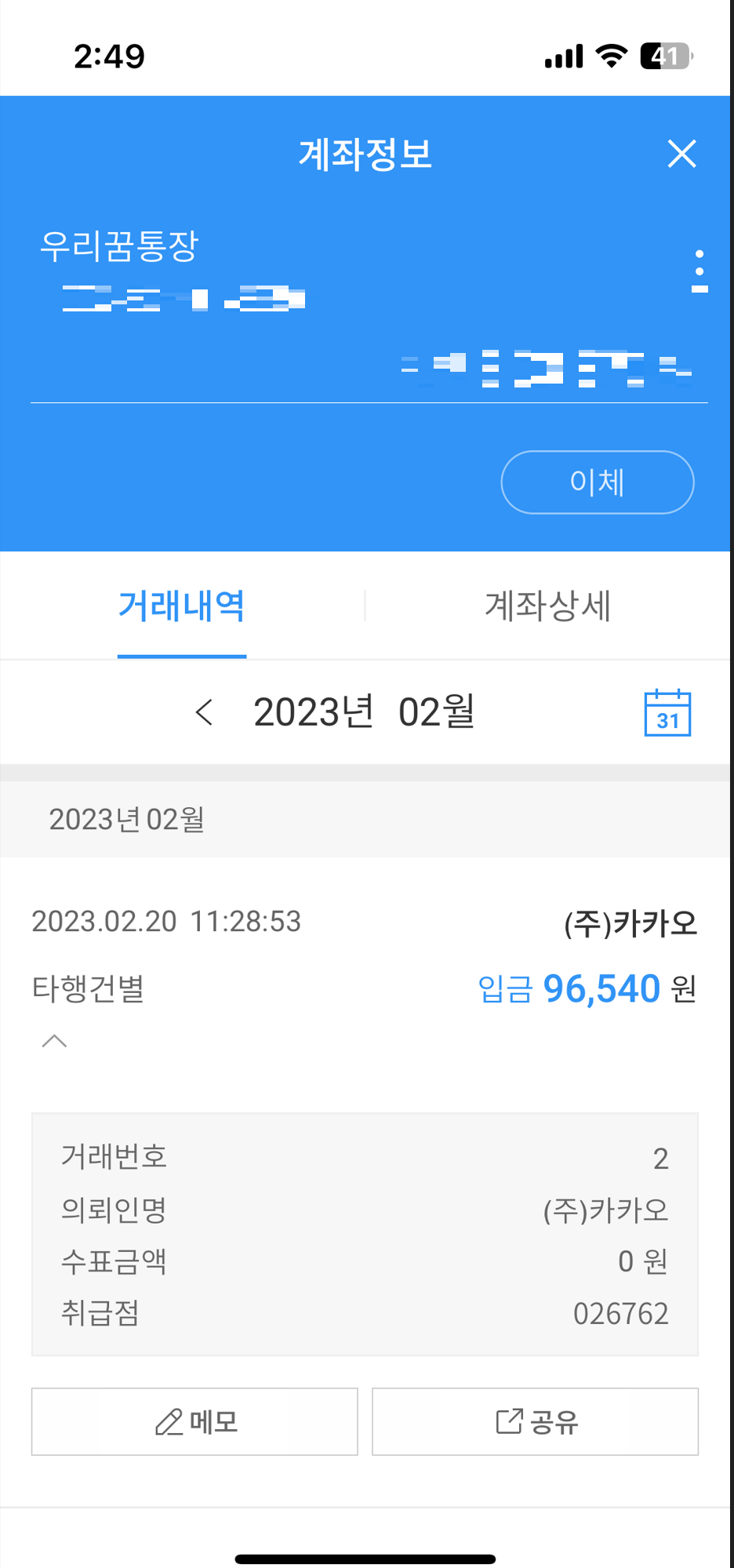 2월20일 입금이 완료 되었다.