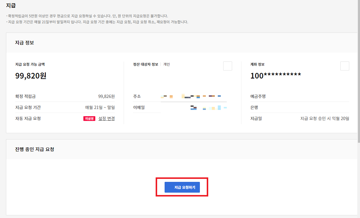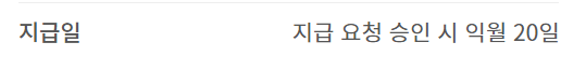 또 지급 요청 기간은 매월 21일 ~ 말일 지급일은 지급 요청 승인 시 익월 20일 이다.
