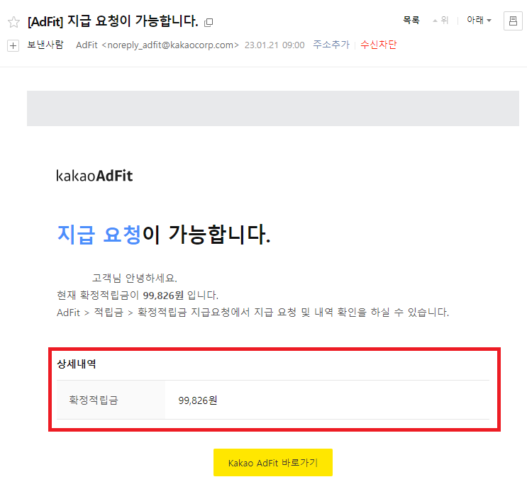 참 오랫동안 카카오 애드핏을 했는데 이제서야 적립금을 받는다.