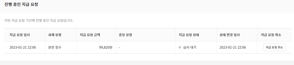 정보를 다 하면 위와 같이 지급 요청하기가 나온다 누르자.