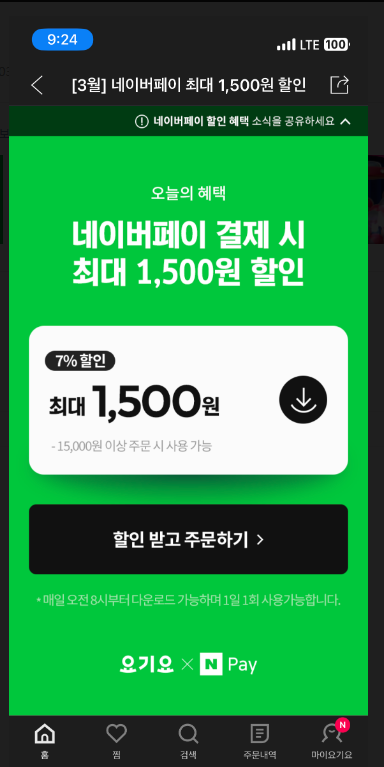 네이버페이 x 요기요 1천원 할인쿠폰(1만원이상) 이 드디어 사라졌다 ㅠ.ㅠ