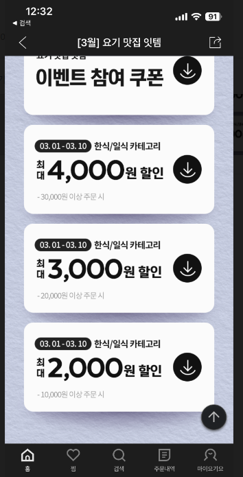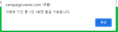 라고 메세지 뜨면서 더이상 쿠폰을 받을 수 없다. 아쉽다. 그나마 쓸수 있는 쿠폰중에 하나였는데..