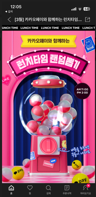 역시 매일이 아닌 랜덤하게 런치타임 뽑기가 나온다.