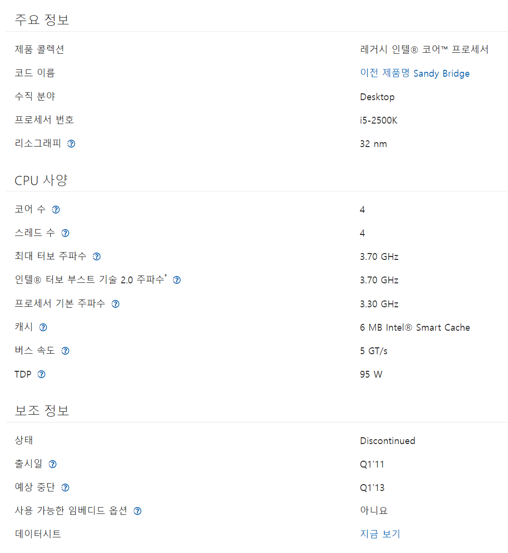 2500K는 2세대 인텔 CPU 이다.
