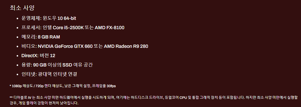 디아블로4 최소 요구사항이 발표 되었다.
