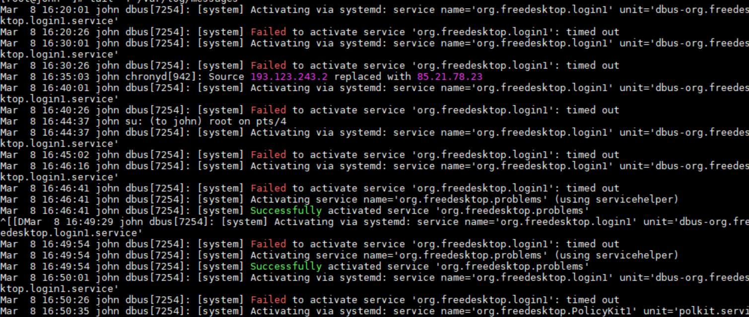 john dbus[7254]: [system] Failed to activate service 'org.freedesktop.login1': timed out
