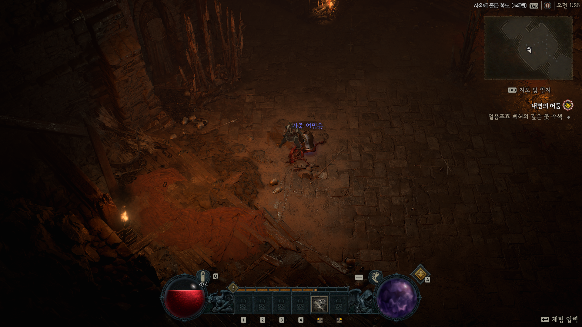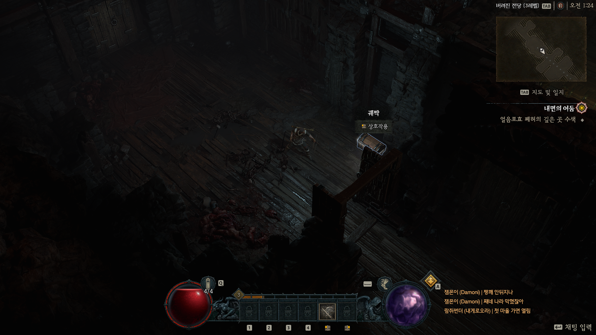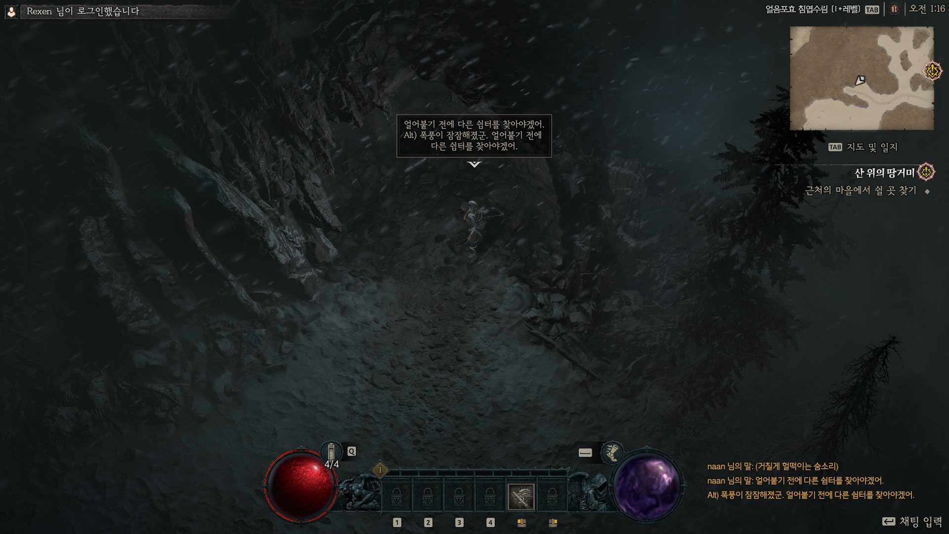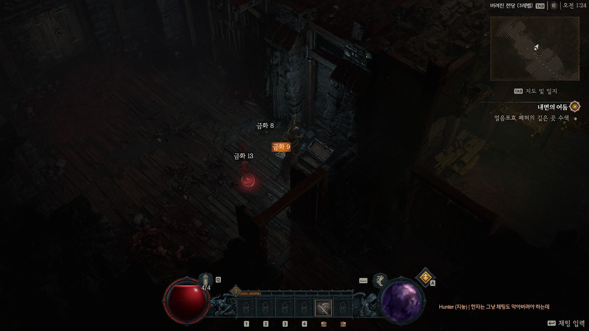 다행이 게임 다시 들어가니 캐릭터는 살아 있다.