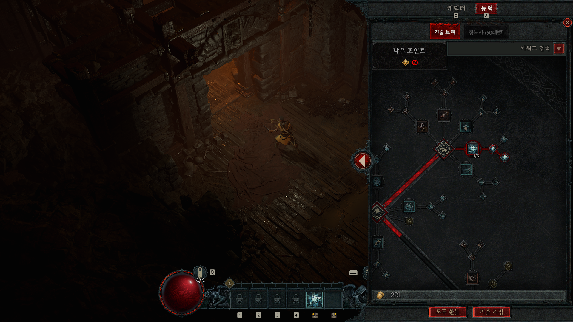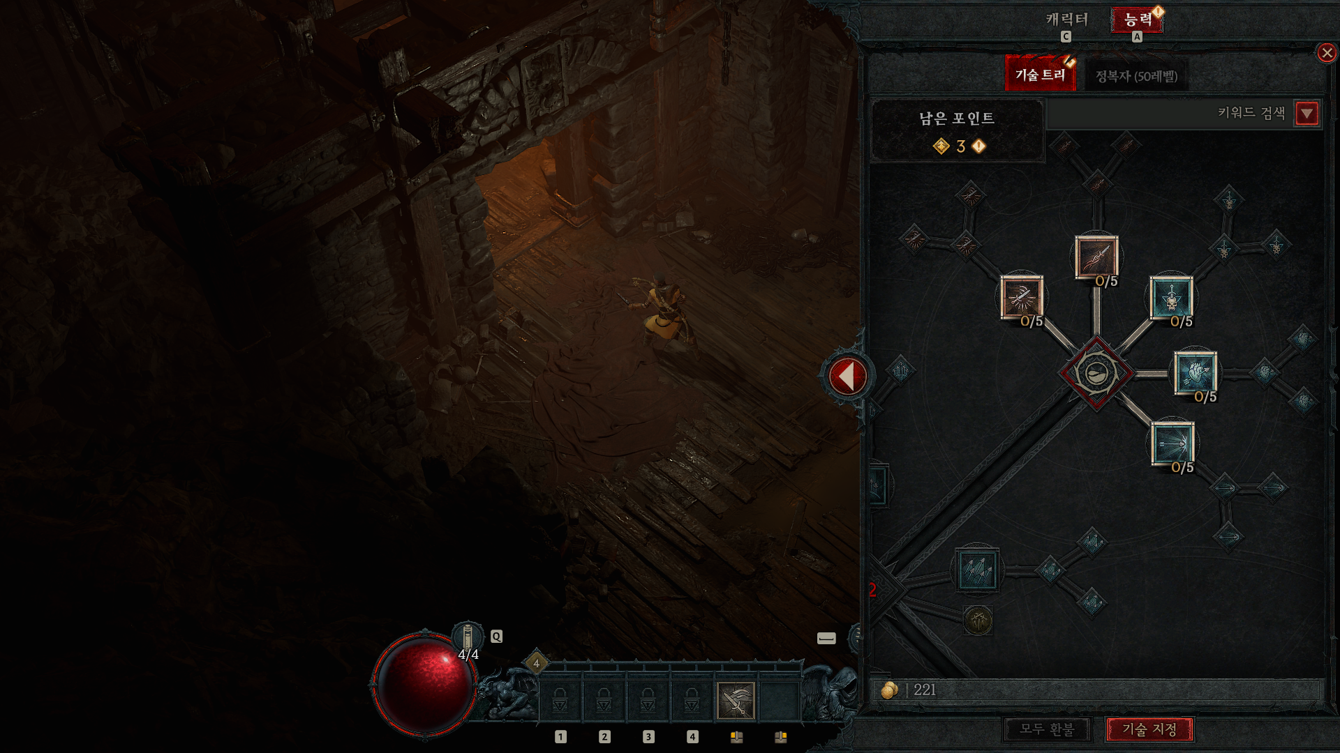 레벨업을 했더니 스킬을 찍을수 있다. A누르면 스킬트리가 나온다.